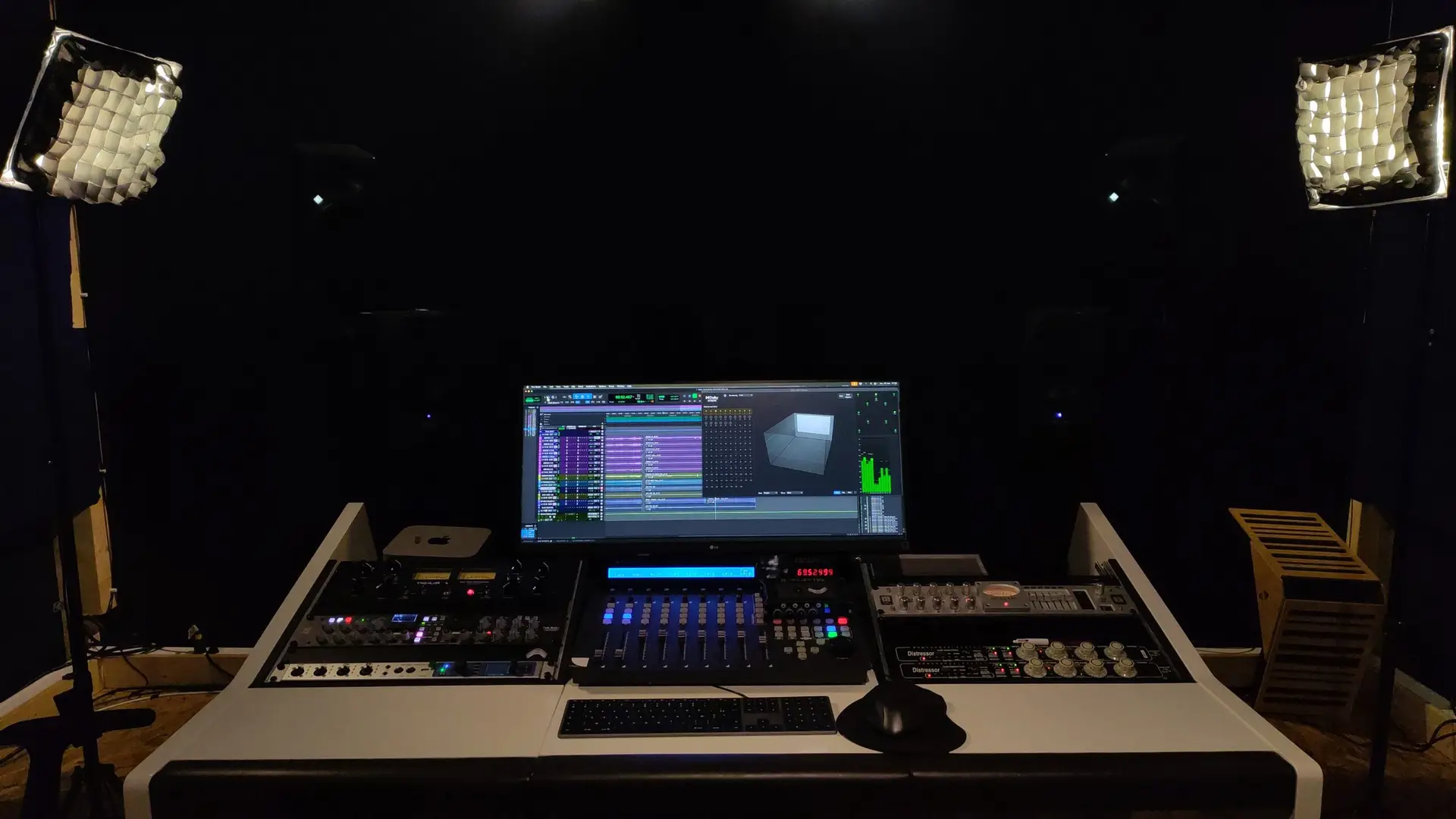 Vous aurez accès à des outils hardware et software puissants, la cabine est calibrée en TRINNOV. Les écoutes sont des Tannoy pour l’ATMOS et des Neumann pour la stéréo.