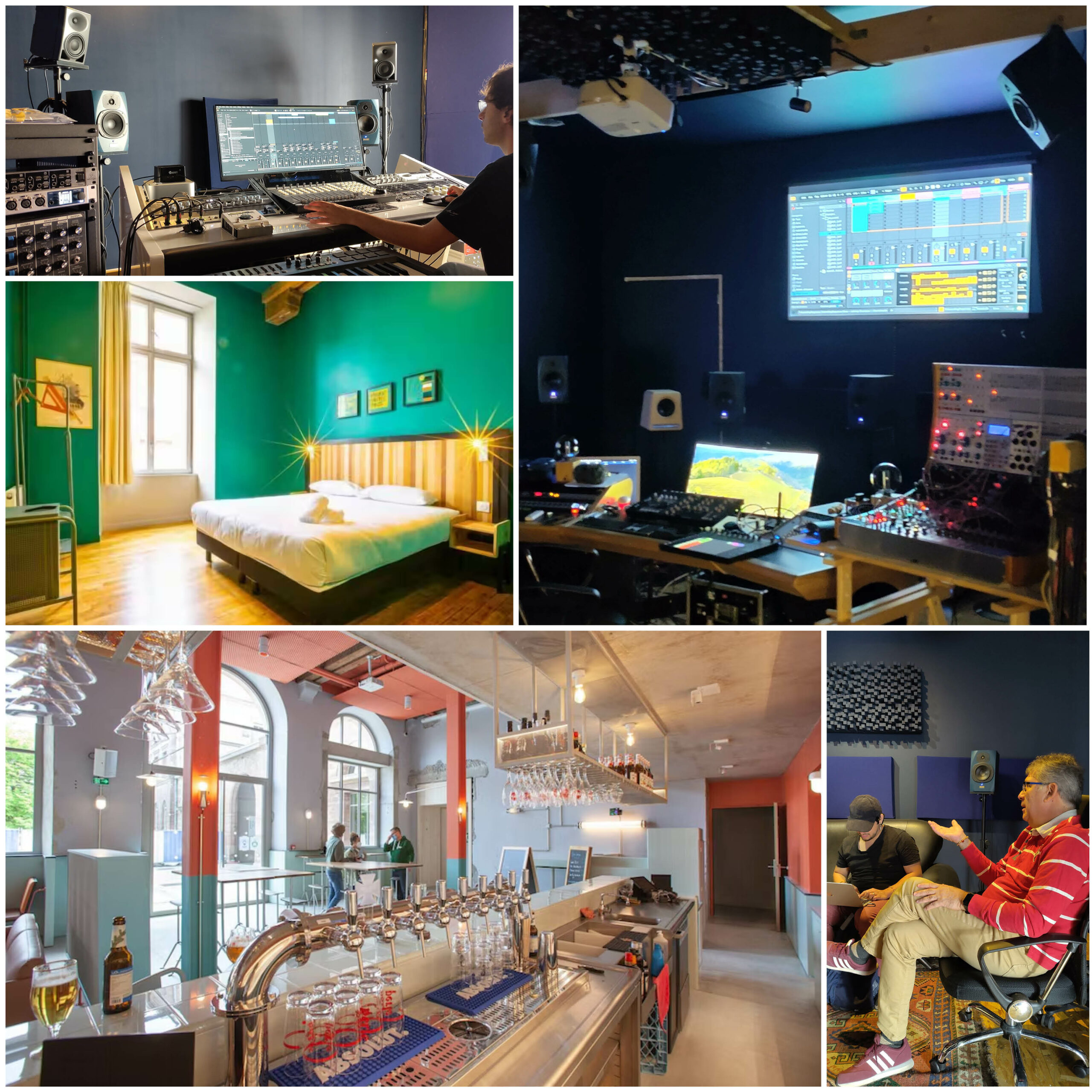 Sur 150 m², vivez votre production dans un cadre premium avec accès direct à l’hôtel, restauration continue et bar VIP réservé à votre équipe. Un plateau complet de 5 studios immersifs pour créer, enregistrer et mixer dans les meilleures conditions à Strasbourg, l’accès à des chambres entre 2 et 8 personnes pour vos équipes de production, vos artistes.